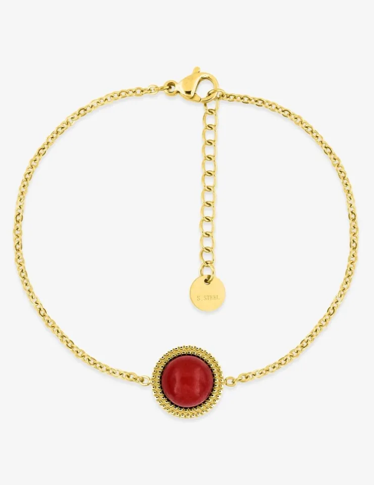 Bracelet en acier doré avec rubis synthétique 19 cm SO OR