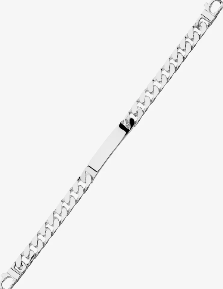 Bracelet identité en argent 925 ‰ (9 carats), avec une finition rhodiée impeccablement polie. Ce bracelet allie la robustesse de sa maille gourmette à l’élégance intemporelle d’une plaque gravable de 8 mm. Mesurant 20 cm de longueur et affichant un poids total de 33,70 g, ce bracelet est un cadeau personnalisable et sentimental qui capture des moments précieux et des sentiments profonds. Parfait pour marquer une occasion spéciale ou simplement pour exprimer votre affection.