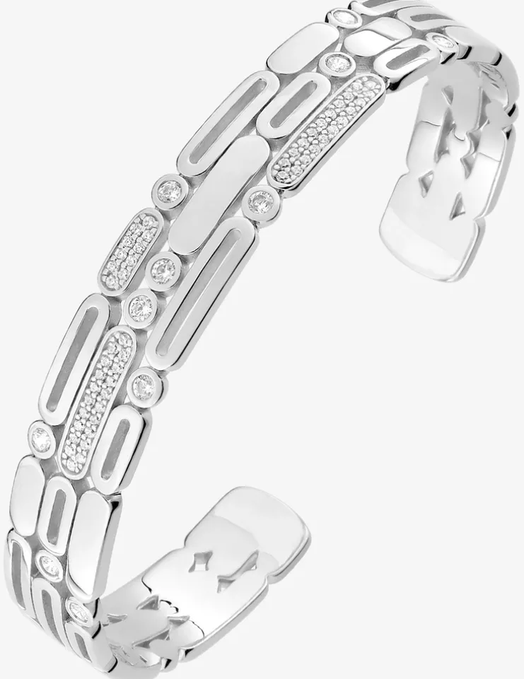 Bracelet manchette en argent 925 ‰ rhodié et oxydes de zirconium SO OR