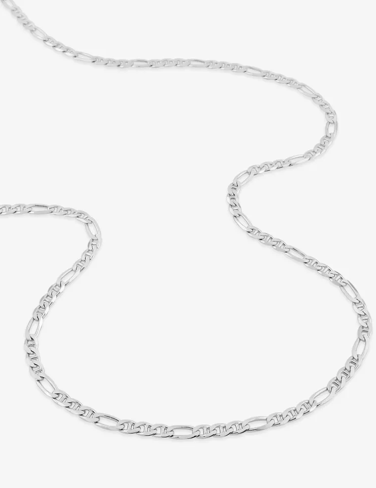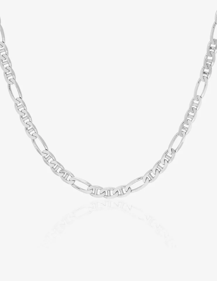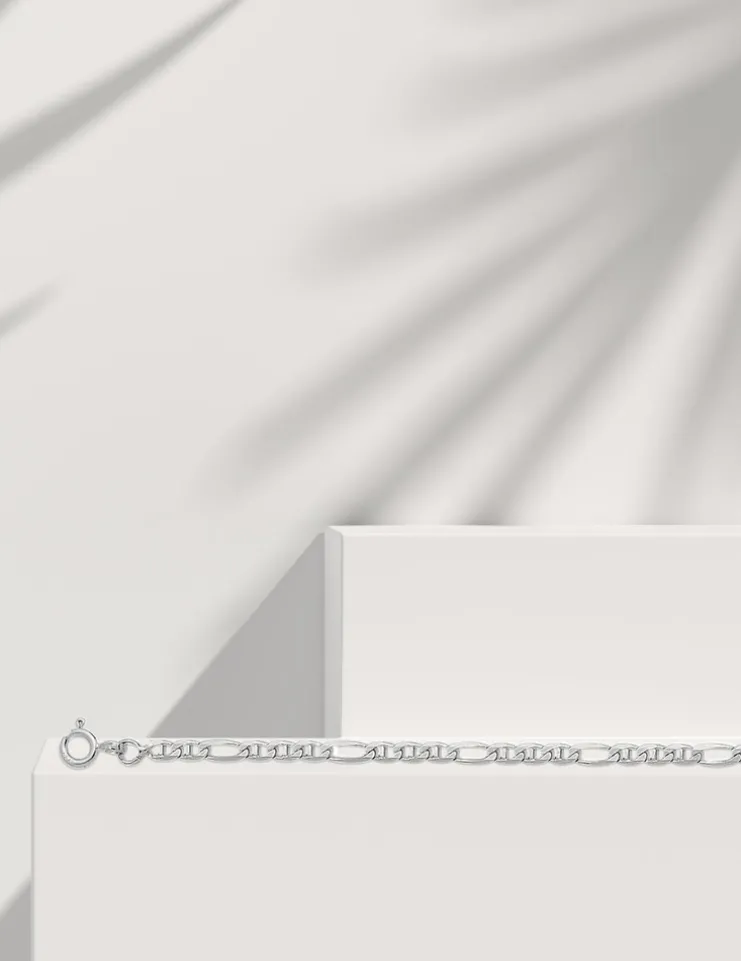Cette chaîne en maille bâton alternée 1+3 est en or blanc 375 ‰ (9 carats). Ce bijou a un poids moyen d’or de 2,60 g pour une longueur de 50 cm., et il est équipé d’un fermoir anneau ressort.Cette somptueuse chaîne accompagnera avec raffinement vos poignets, chevilles ou votre cou.