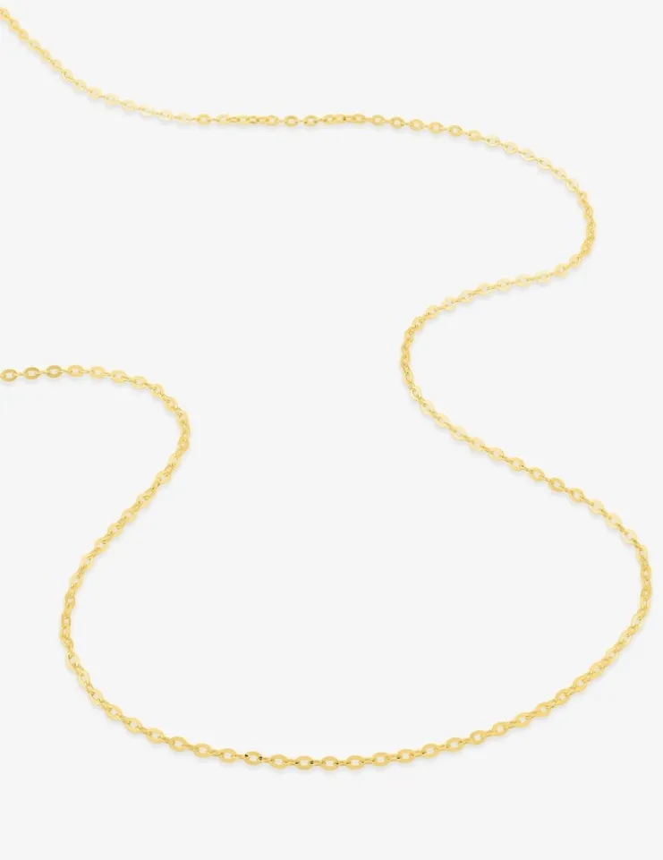 Chaine en or jaune 750 ‰ (18 carats). Cette chaine en maille forçat miroir a un poids moyen d’or de 0,90 g pour une longueur de 18 cm (bracelet) et 1,55 g pour une longueur de 40 cm (collier) et elle est équipée d’un fermoir anneau ressort.