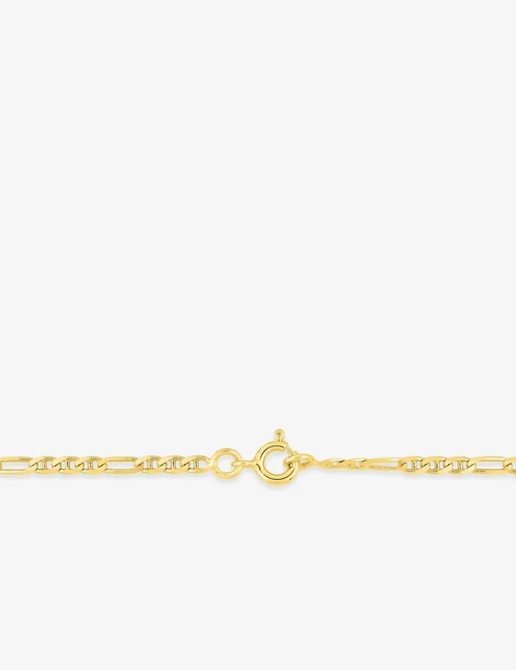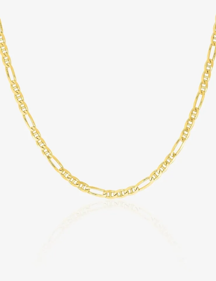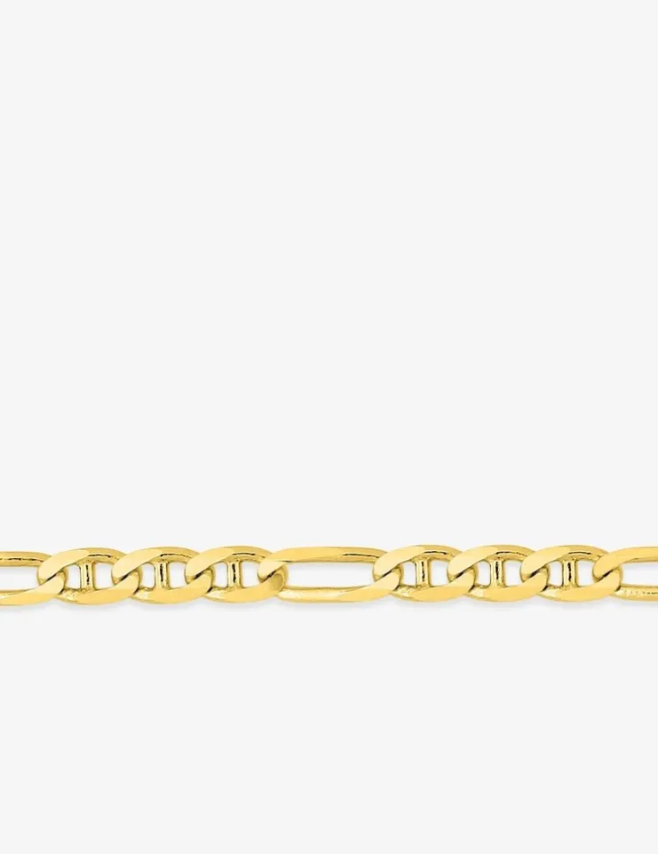 Chaîne en or jaune 375 ‰ (9 carats), présentant une élégante combinaison de mailles bâton et marine alternées en 1+3. Avec un poids total de 1,60 g et une longueur de 18 cm, ce bijou fin et raffiné est conçu pour un confort quotidien optimal. Il se ferme en toute sécurité grâce à un fermoir anneau ressort. Simple et discret, il s’accorde parfaitement avec toutes vos tenues, ajoutant une touche de sophistication à votre style.