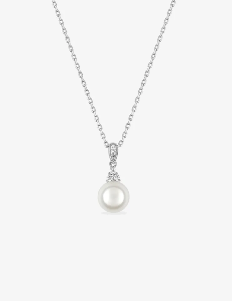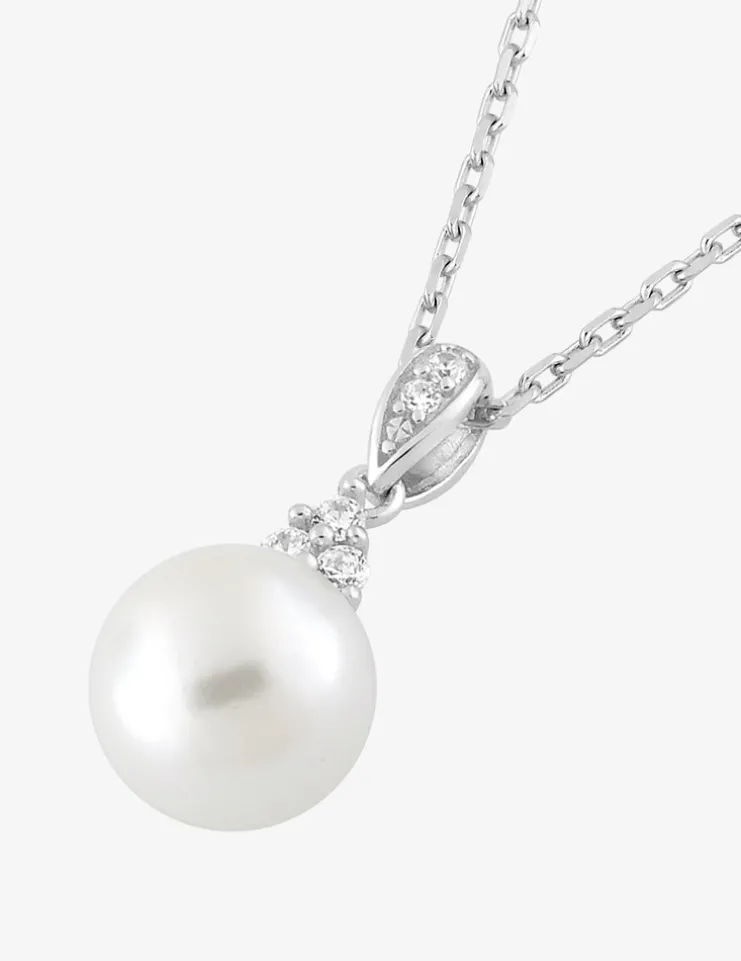 Collier argent 925‰ rhodié, perle 7 mm et oxydes de zirconium SO OR