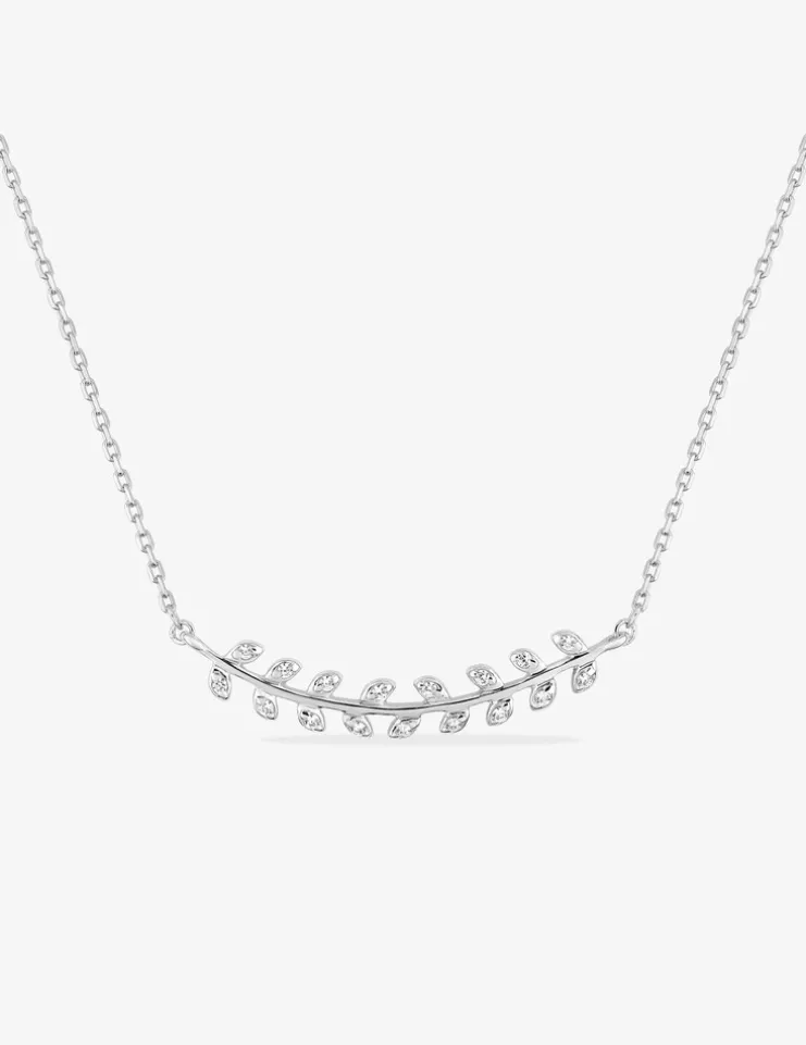 Ce collier en argent 925‰ rhodié arbore une délicate branche sublimée de feuilles d’oxydes de zirconium. La chaîne mesure 40 cm plus 3 cm de chaîne de rappel et le motif mesure 30 mm de longueur. L’élégance au naturel.