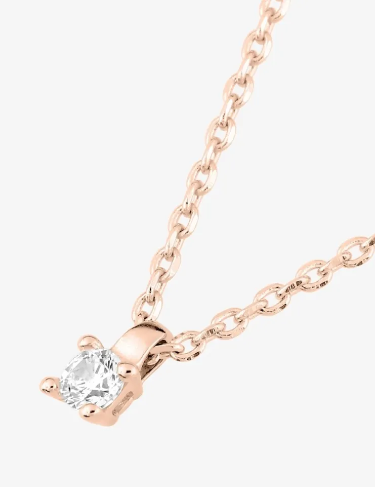 Chaîne forçat avec pendentif plaqué or rose et oxyde de zirconium 3 mm serti griffes. Le collier mesure 40 cm avec 3 cm de chaîne de rappel en plus et possède un fermoir en anneau ressort. Il apportera de l’éclat en toute légèreté.