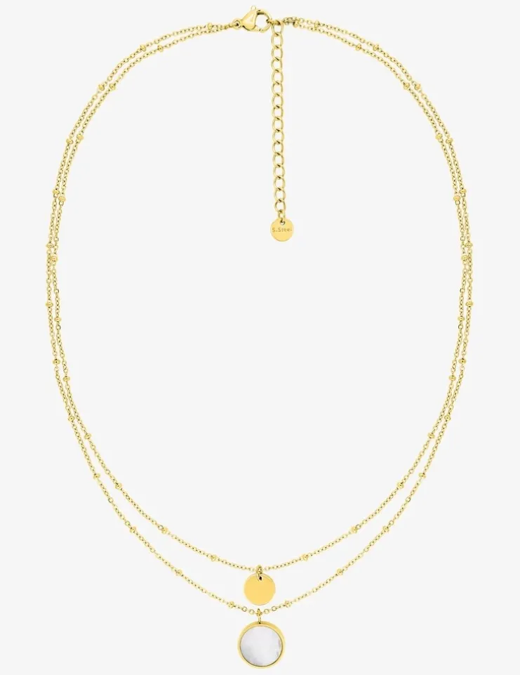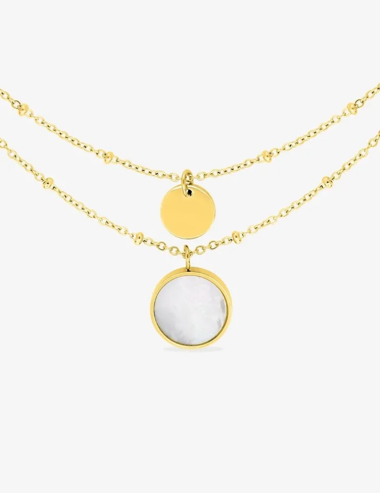 Collier double chaîne en acier doré et nacre blanc SO OR