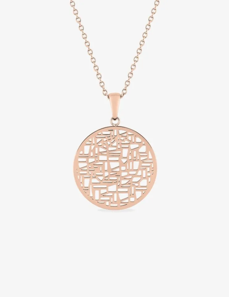 Craquez pour ce collier rose en acier très féminin. Ce collier est en acier rose et est accompagné d’un pendentif rond ajouré, avec à l’intérieur des motifs géométriques. Il est soutenu par une chaîne forçat de 40 cm avec 5 cm de chaîne de rappel. Il se ferme via un anneau ressort.Un sublime collier très féminin qui saura vous mettre en valeur.