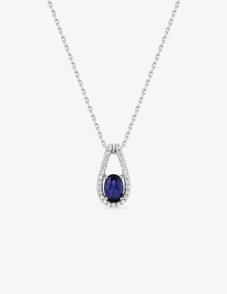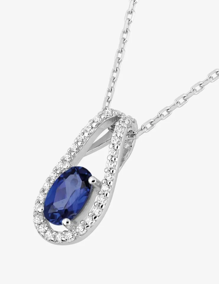 Collier en argent 925‰ rhodié, magnifié par un oxyde de zirconium bleu entouré d’oxydes de zirconium blancs. La pierre principale mesure 7×5 mm, parfaitement mise en valeur par une chaîne de 40 cm avec une extension de 3 cm pour un ajustement parfait. Pesant au total 2,62 g, ce collier élégant complétera à merveille tous vos ensembles.