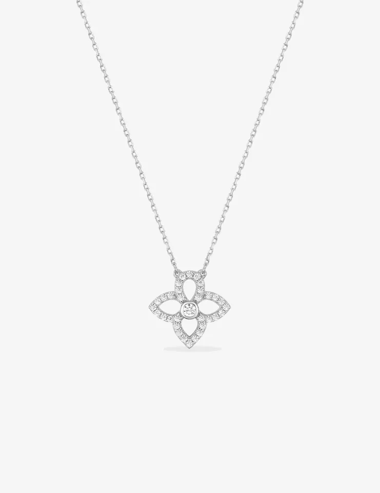 Collier fleur or blanc 375‰ et oxydes de zirconium SO OR