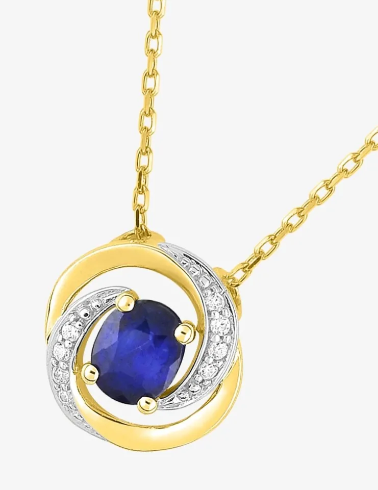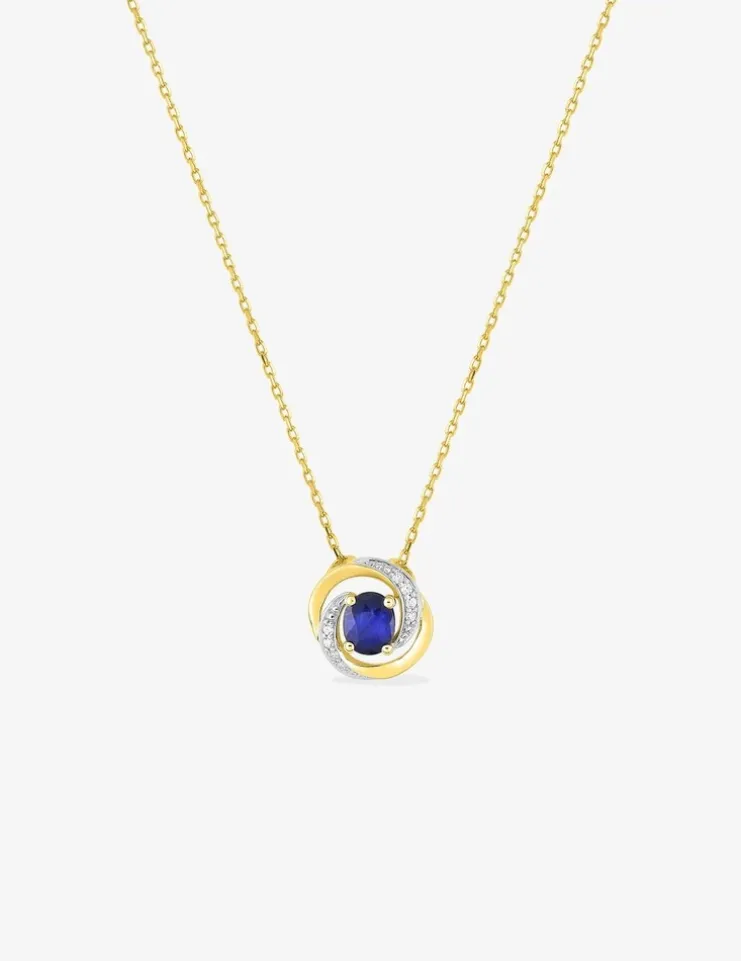 Collier or jaune 750 ‰ oxyde de zirconium, saphir et rhodium SO OR