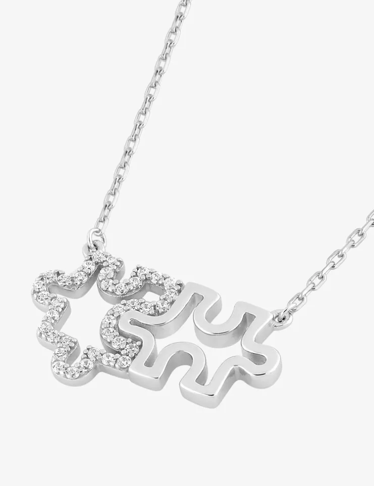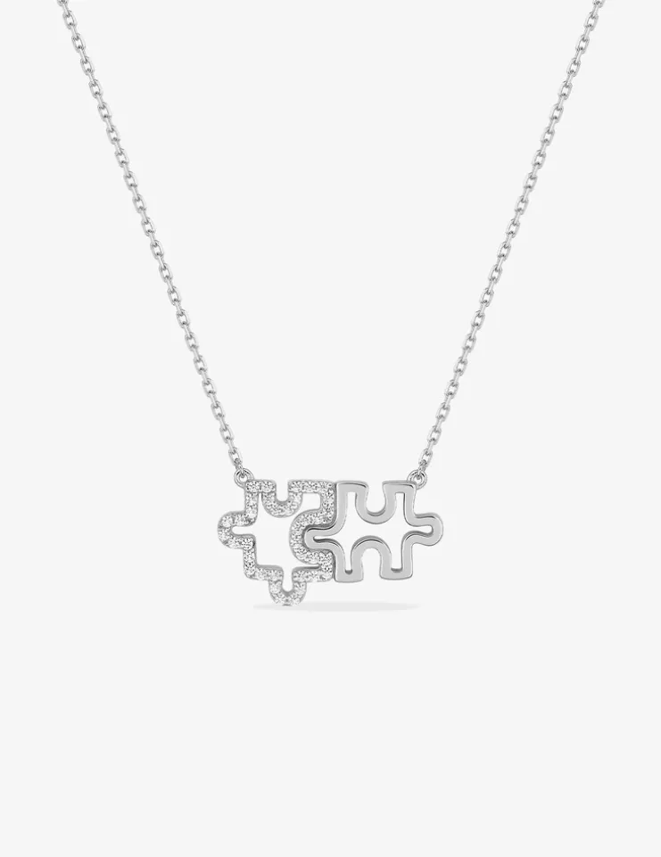 Collier puzzle en argent 925‰ rhodié et oxyde de zirconium SO OR