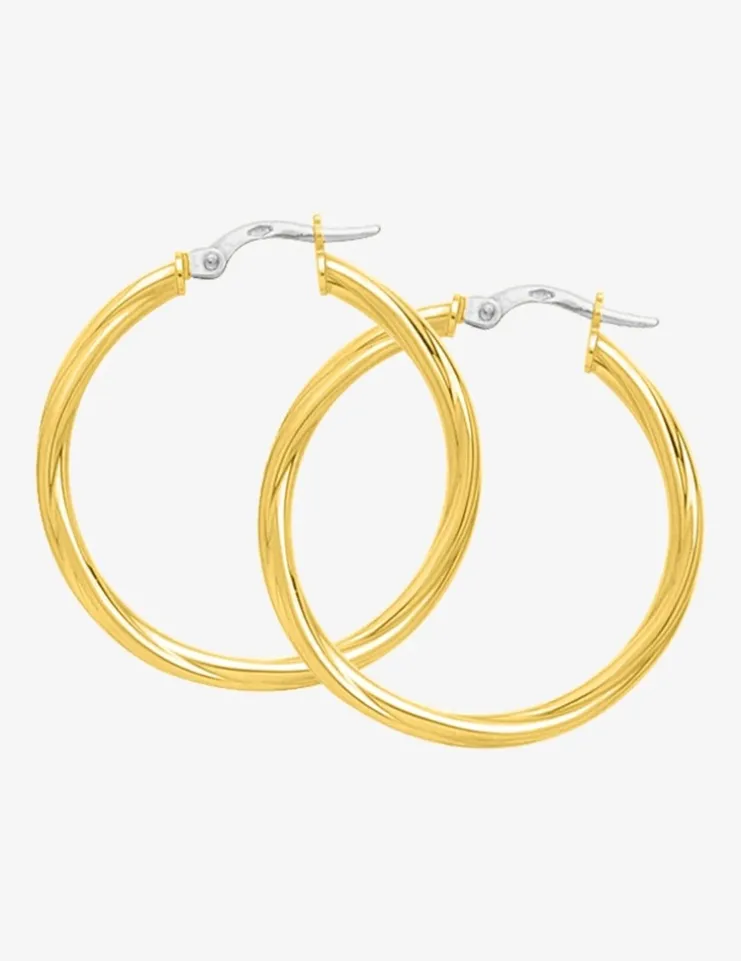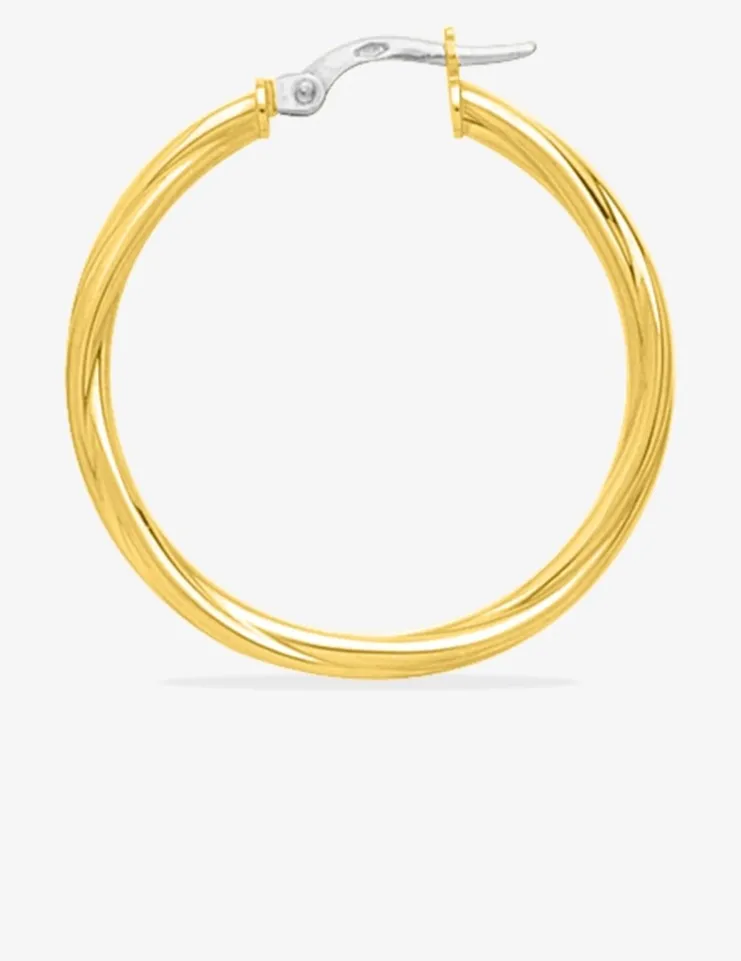 Créoles torsadées 25 mm fil 2,5 mm or jaune 750‰ SO OR