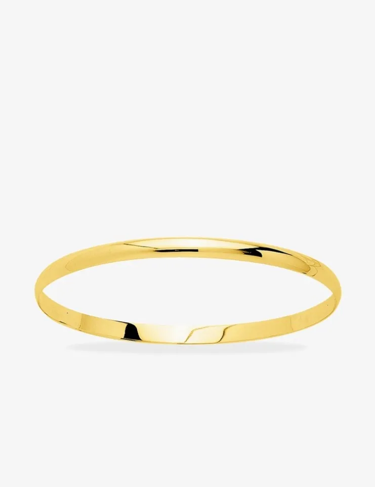 Demi-jonc plat massif en or jaune 750 ‰ (18 carats). Il a un un poids moyen d’or de 6,30 g pour une largeur de 3 mm et un diamètre de 63 mm. Un grand classique de la bijouterie, intemporel et chic.