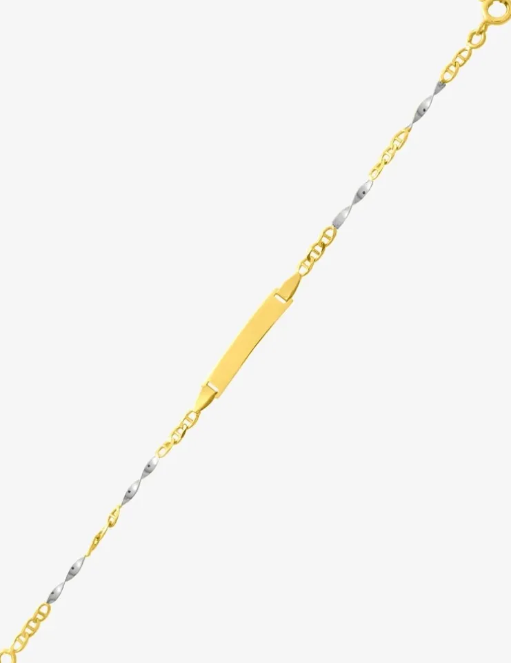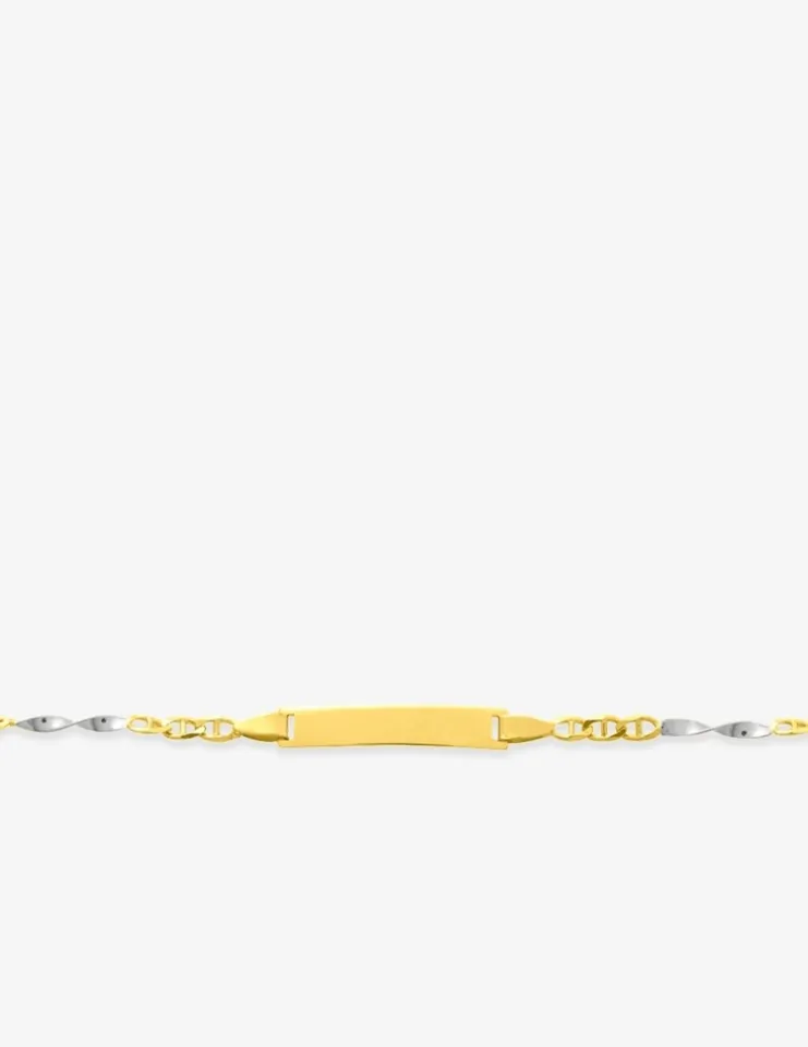 Gourmette bébé chaîne fantaisie bicolore et plaque rectangle or 750‰ SO OR