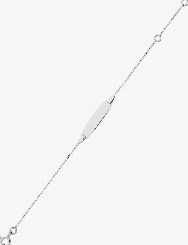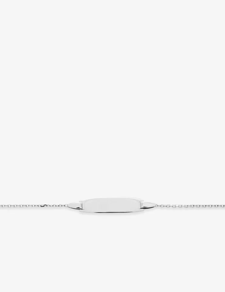 Gourmette bébé chaîne forçat et plaque ovale or blanc 750‰ SO OR