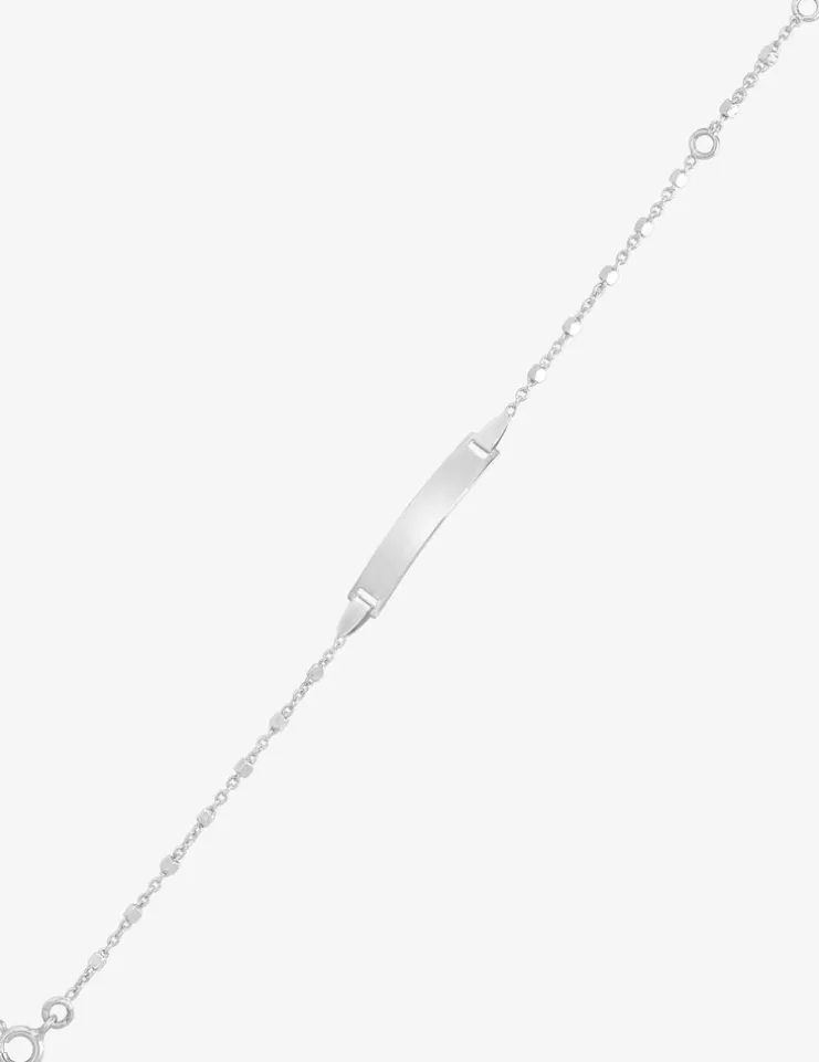 Offrez cette gourmette à votre bébé en argent 925‰ rhodié. Cette gourmette est soutenue par une maille forçat de 15 cm. Elle se ferme via un anneau ressort et dispose d’un anneau intermédiaire à 13 cm.La gourmette est accompagnée d’une plaque rectangulaire. Sur la chaîne se trouvent des motifs cubiques.Afin de rendre ce bijou symbolique, vous avez la possibilité de le faire graver.Une magnifique gourmette à offrir à votre bébé pour sa naissance ou son baptême.
