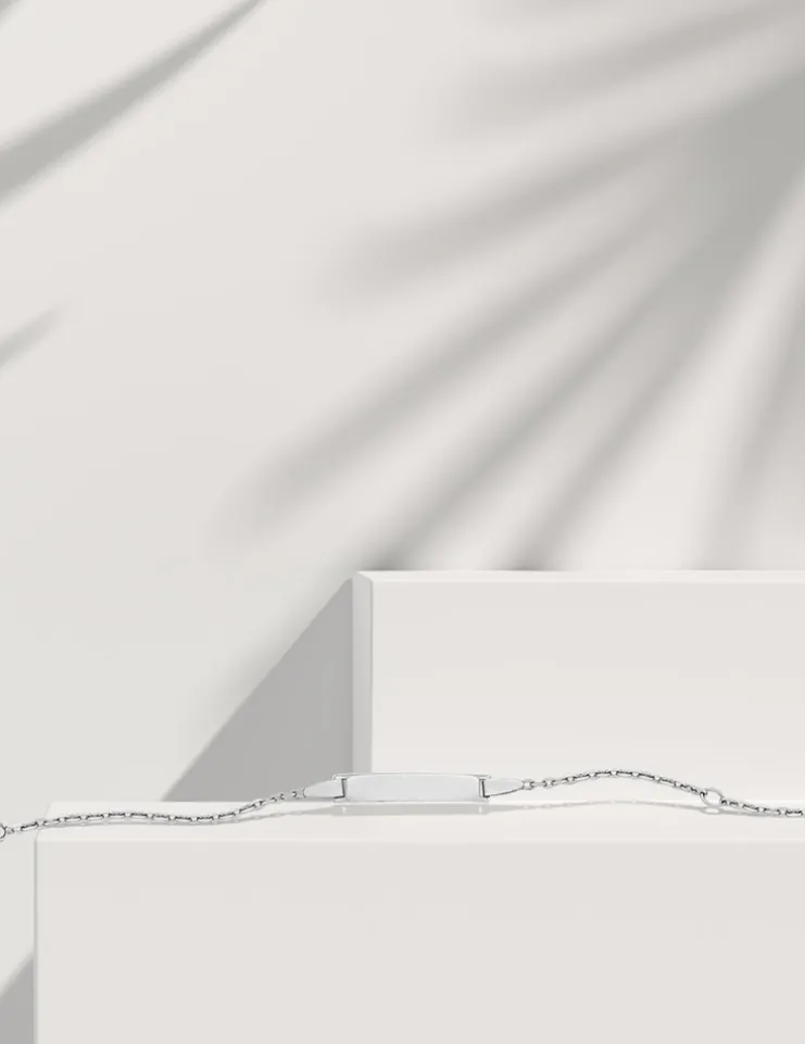 Cette gourmette bébé est en or blanc 375 ‰ (9 carats). Ce bijou a un poids moyen d’or de 1,75 g pour une longueur de 14 cm. Il est équipé d’un anneau souple à 12 cm et d’un fermoir anneau ressort.Pour la naissance ou le baptême d’un enfant, la gourmette est un cadeau idéal, c’est un bijou à la fois personnalisable, sentimental et intemporel.