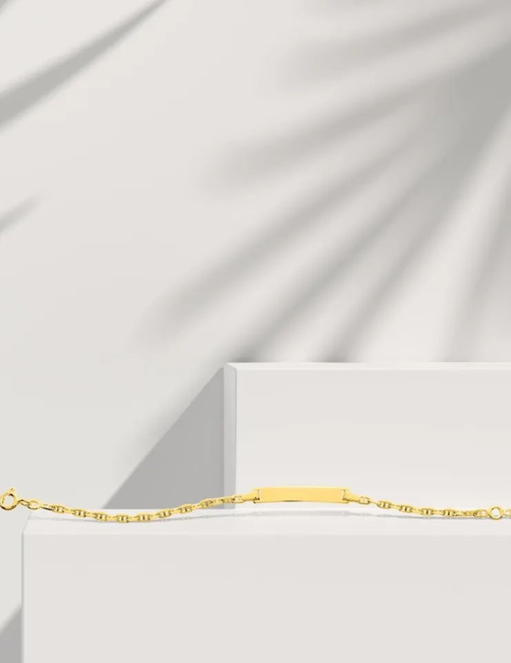 Cette gourmette bébé est en or jaune 375 ‰ (9 carats). Ce bijou a un poids moyen d’or de 1,90 g pour une longueur de 14 cm. Il est équipé d’un anneau souple à 12 cm et d’un fermoir anneau ressort.Pour la naissance ou le baptême d’un enfant, la gourmette est un cadeau idéal, c’est un bijou à la fois personnalisable, sentimental et intemporel.