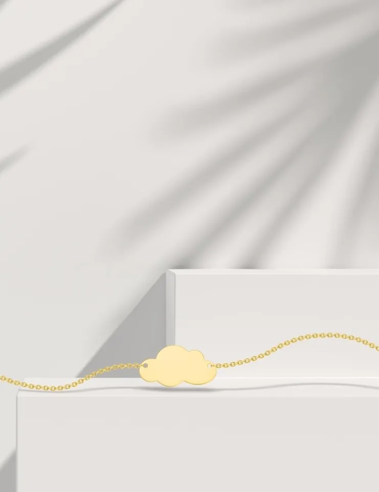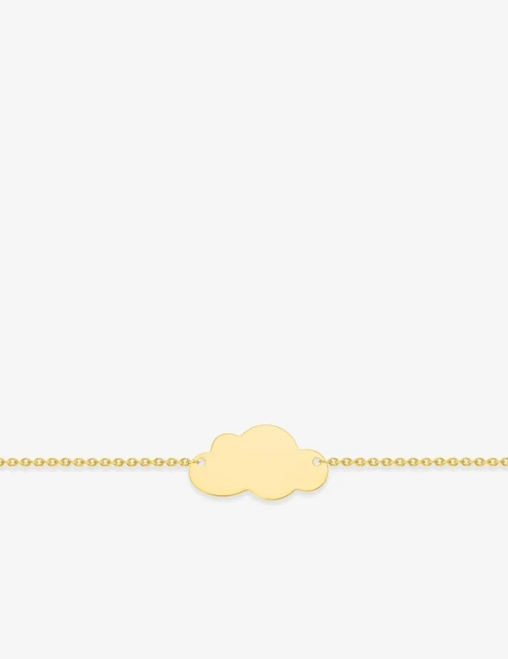 Cette gourmette bébé est en or jaune 375 ‰ (9 carats). Ce bijou a un poids moyen d’or de 1,45 g pour une longueur de 14 cm. Il est équipé d’un anneau soudé à 12 cm et d’un fermoir anneau ressort. La plaque en forme de nuage est personnalisable.Pour la naissance ou le baptême d’un enfant, la gourmette est un cadeau idéal, c’est un bijou à la fois personnalisé, sentimental et intemporel.
