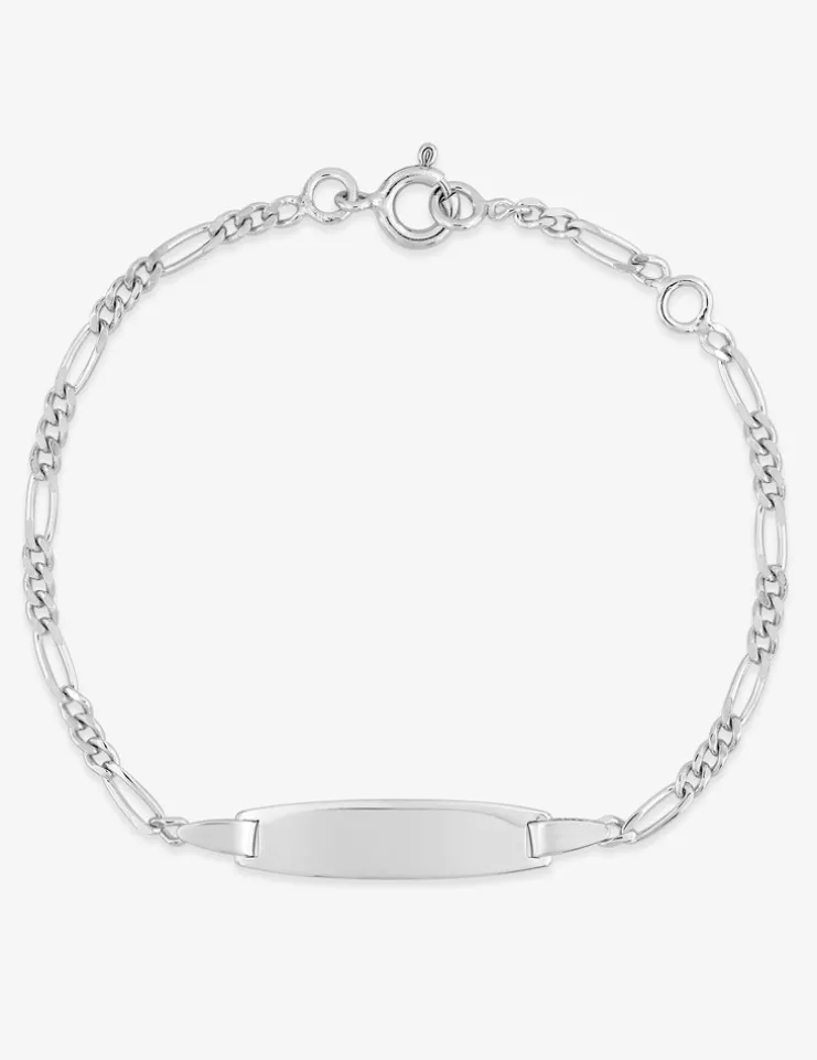 Gourmette identité pour bébé en argent 925‰ rhodié, avec une maille alternée 1+3 et une plaque gravable. Pesant 1,95 g, elle mesure 15 cm de longueur avec un anneau intermédiaire à 13 cm, et se ferme facilement grâce à un fermoir anneau ressort. Ce bijou combinant personnalisation, valeur sentimentale et intemporalité sera parfait pour embellir le quotidien de votre bébé avec sécurité et élégance.
