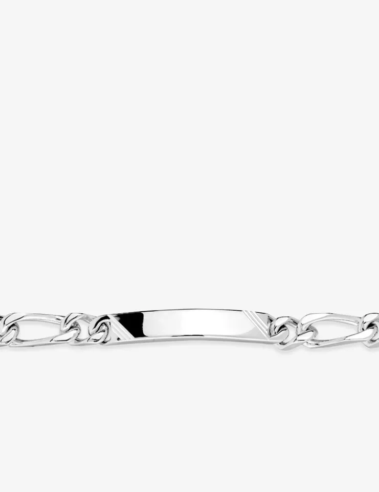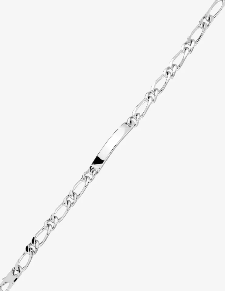 Adoptez ce bracelet identité en maille cheval alternée en argent 925‰ rhodié. Ce bracelet est accompagné d’une plaque d’une largeur de 6mm avec des motifs en relief sur les extrémités. Ce bracelet est d’une longueur de 20 cm et se ferme via un mousqueton.Afin d’en faire un bracelet unique, vous avez la possibilité de le faire graver. Un bijou unique et intemporel.