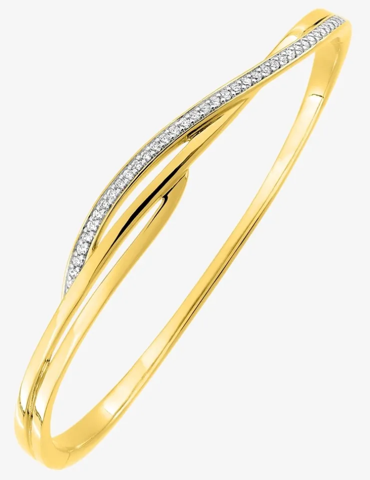 Jonc ouvrant plaqué or, oxyde de zirconium et rhodium aux courbes fantaisies SO OR