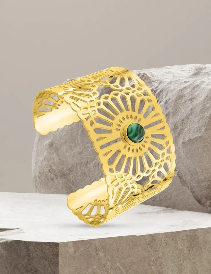 Manchette acier doré et malachite SO OR