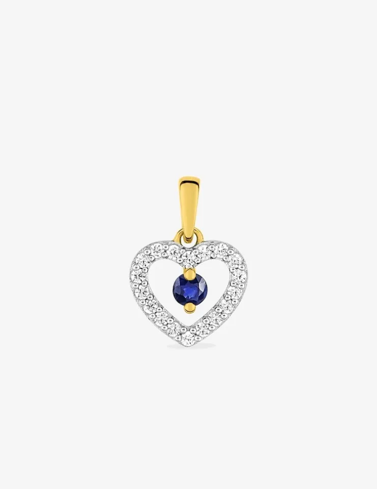 Pendentif cœur or jaune 375‰, rhodium, saphir et oxydes de zirconium SO OR