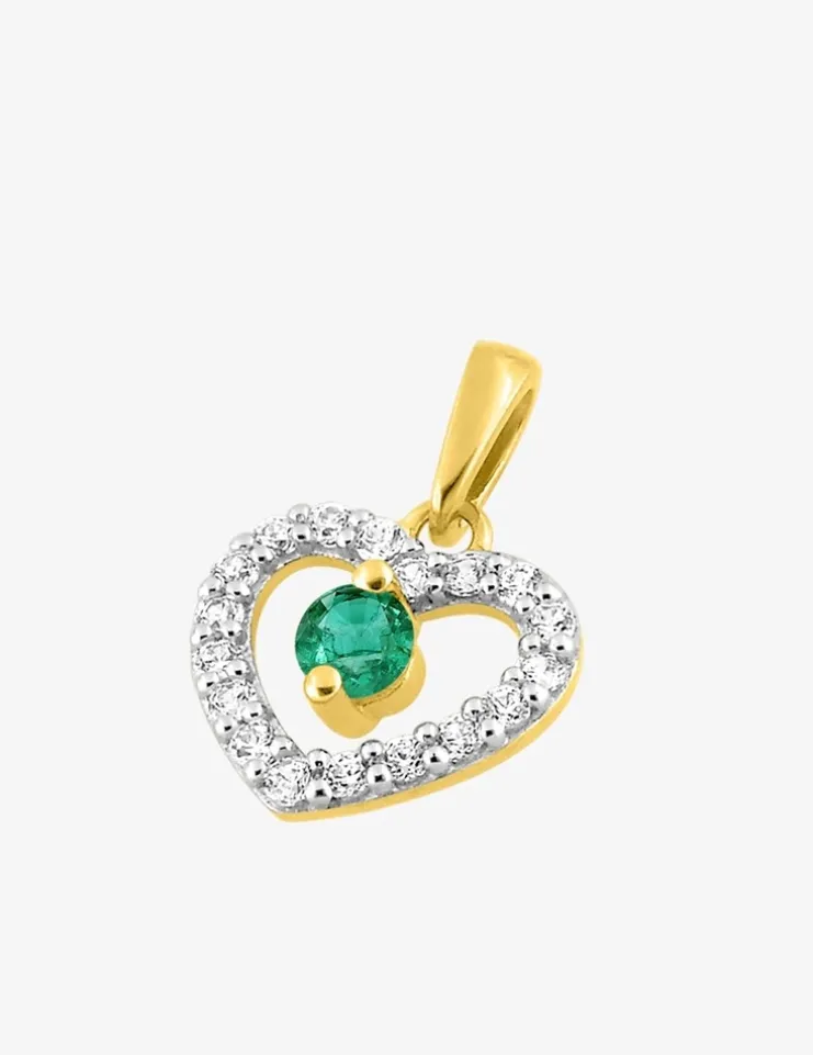 Pendentif émeraude et oxyde de zirconium en or 375‰ SO OR