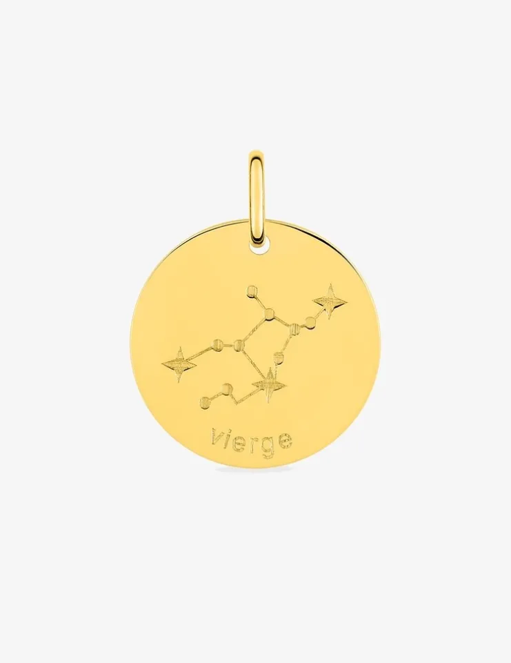 Pendentif zodiaque rond constellation Vierge plaqué or SO OR