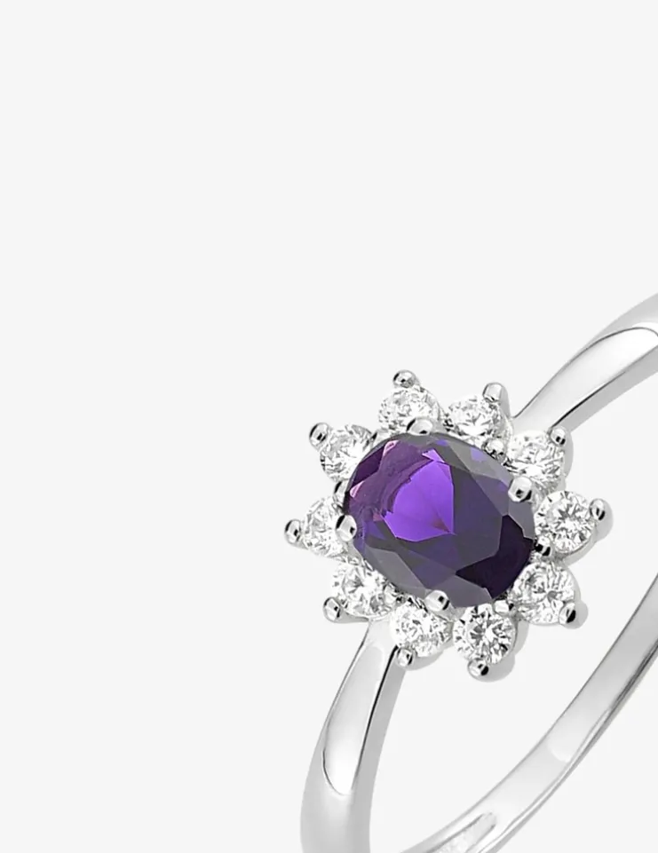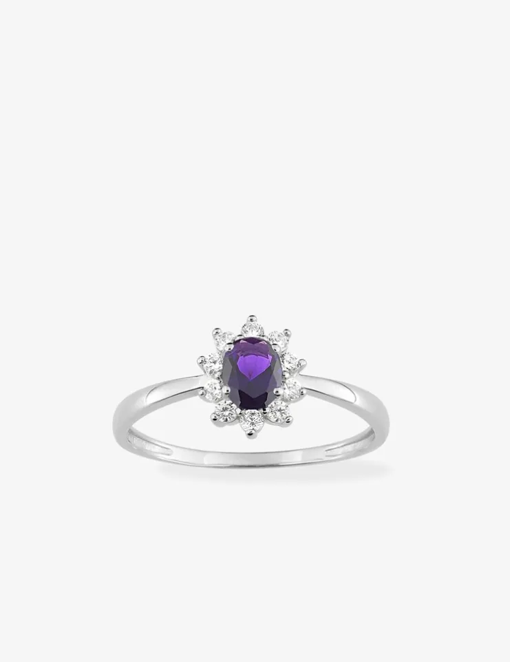 Solitaire accompagné fleur argent 925‰ rhodié et oxyde de zirconium violet SO OR