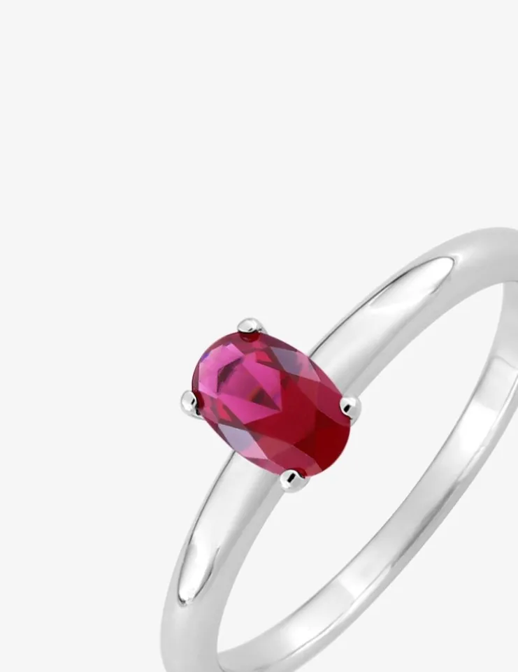 Apportez une touche de couleur à votre look avec cette bague solitaire en argent 925‰ rhodié. Elle est sertie d’un oxyde de zirconium rouge de 6 mm par 4 mm.