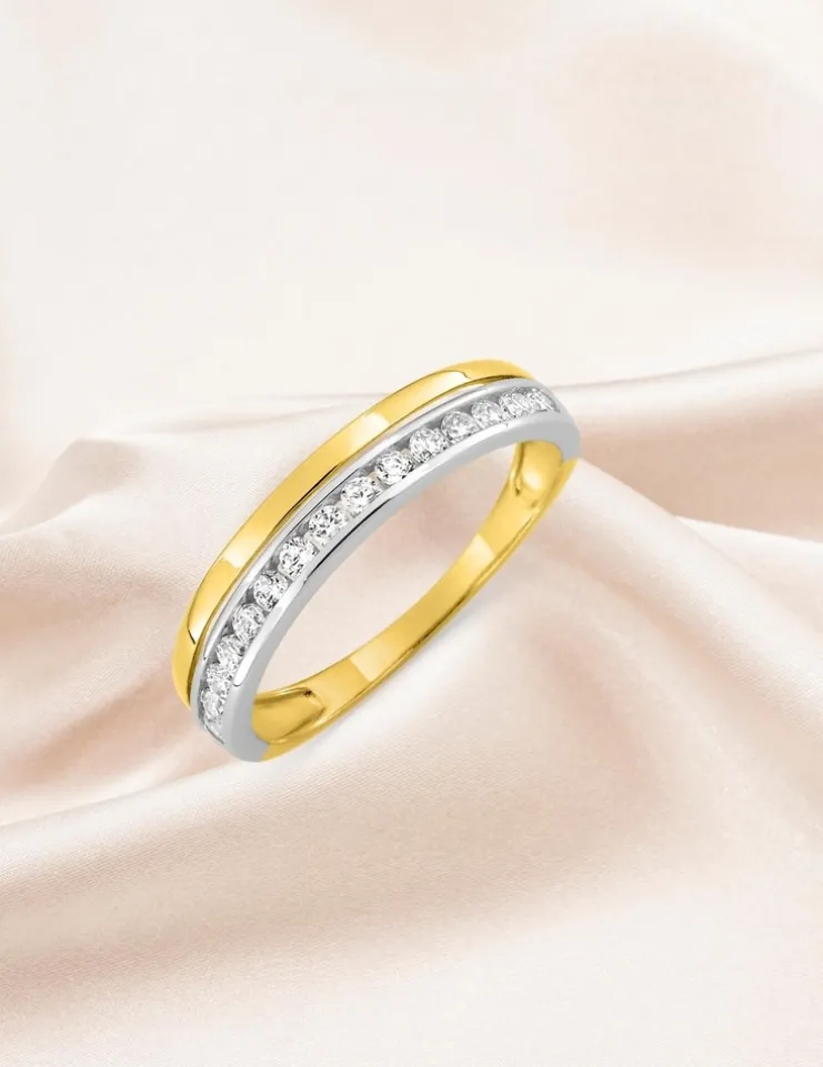 Alliance double serti rail bicolore or 375 ‰ et oxydes de zirconium – Mariage