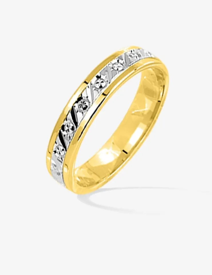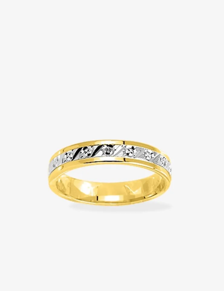 Alliance fantaisie 4 mm or jaune et blanc 375‰ – Mariage