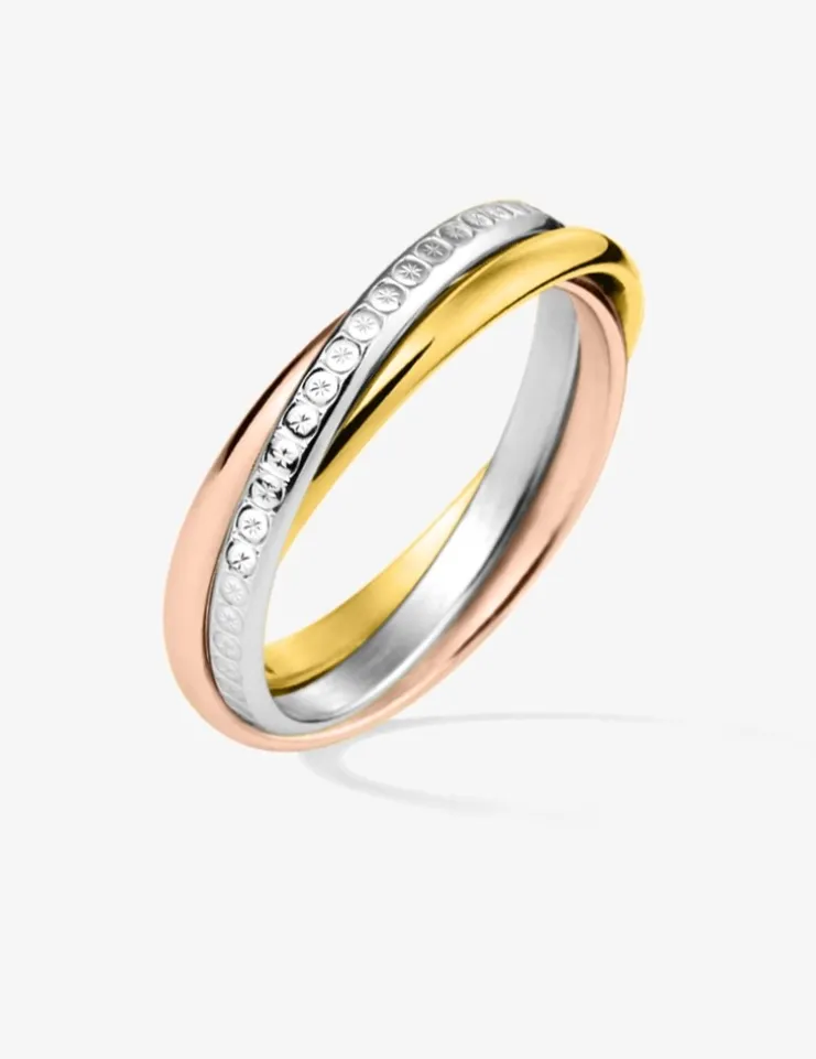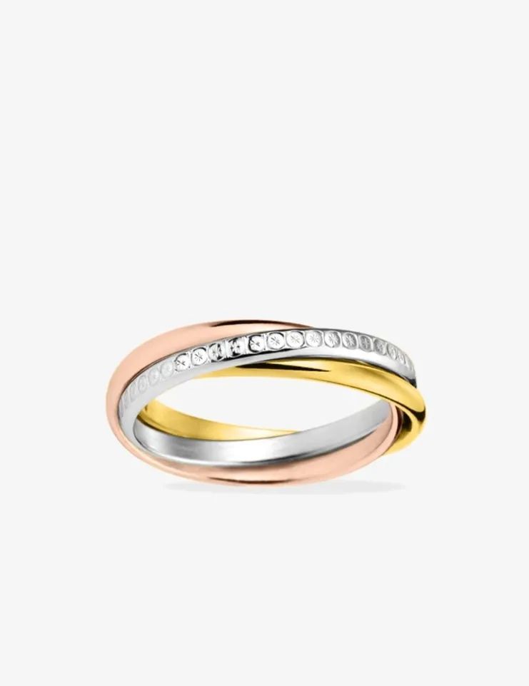 Alliance motif ciselé, or tricolore 750 ‰ trois anneaux – Mariage