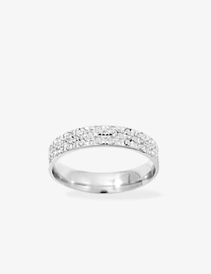 Alliance en or blanc 375 ‰ (9 carats). Cette alliance fantaisie est rhodiée. Son poids d’or moyen est de 2,20 g en taille 54.Cette alliance fantaisie diamantée est simple et élégante.Cette alliance peut être gravée à l’intérieur du corps de bague.