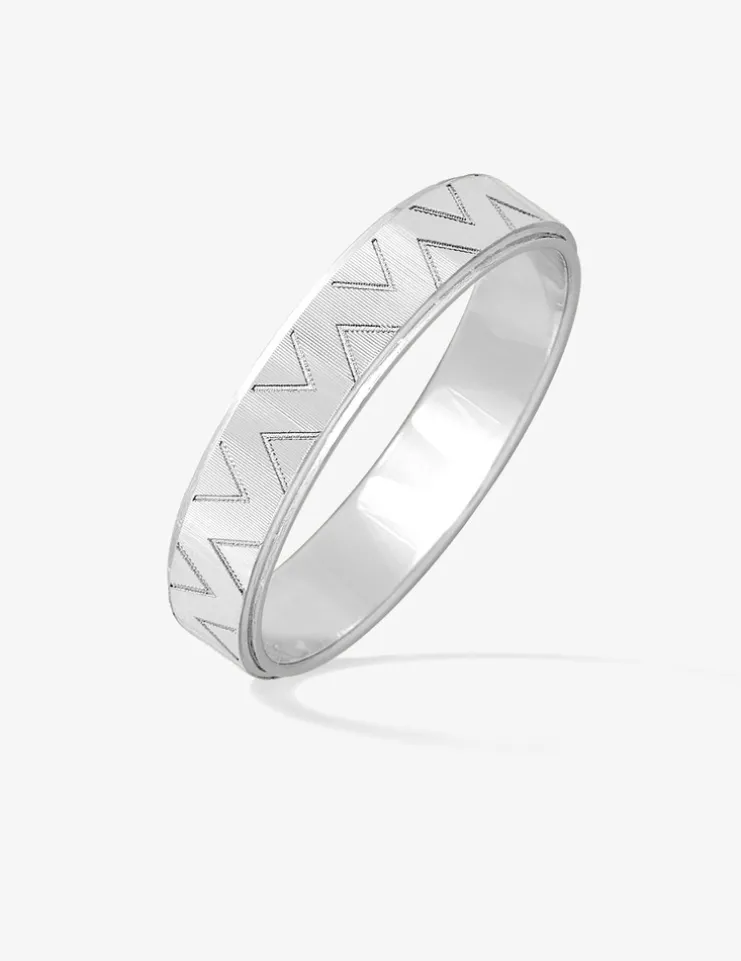 Alliance en or blanc 375 ‰ (9 carats). Cette alliance fantaisie est rhodiée. Elle a une largeur de 4 mm. Son poids d’or moyen est de 2,20 g en taille 54.Cette alliance fantaisie est simple et élégante.Cette alliance peut être gravée à l’intérieur du corps de bague.
