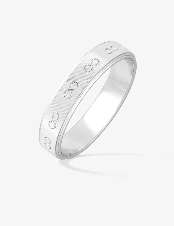 Alliance en or blanc 375 ‰ (9 carats). Cette alliance fantaisie est rhodiée. Elle a une largeur de 4 mm. Son poids d’or moyen est de 2,40 g en taille 54.Cette alliance fantaisie est simple et élégante.Cette alliance peut être gravée à l’intérieur du corps de bague.