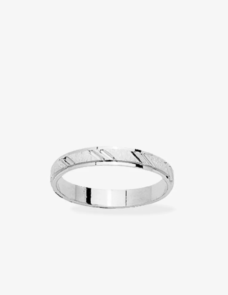 Alliance en or blanc 375 ‰ (9 carats). Cette alliance muguet est rhodiée. Sa largeur est de 3 mm. Son poids d’or moyen est de 1,70 g en taille 54.Cette alliance muguet est simple et élégante.Cette alliance peut être gravée à l’intérieur du corps de bague.