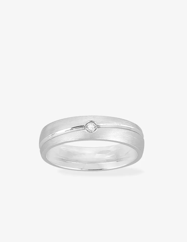 Alliance en or blanc 750 ‰ (18 carats). Cette alliance confort, diamants de 0,04 carats GHP1P2 est rhodiée. Elle a une largeur de 5 mm. Son poids d’or moyen est de 7,30 g en taille 54.Cette alliance confort est simple et élégante.Cette alliance peut être gravée à l’intérieur du corps de bague.