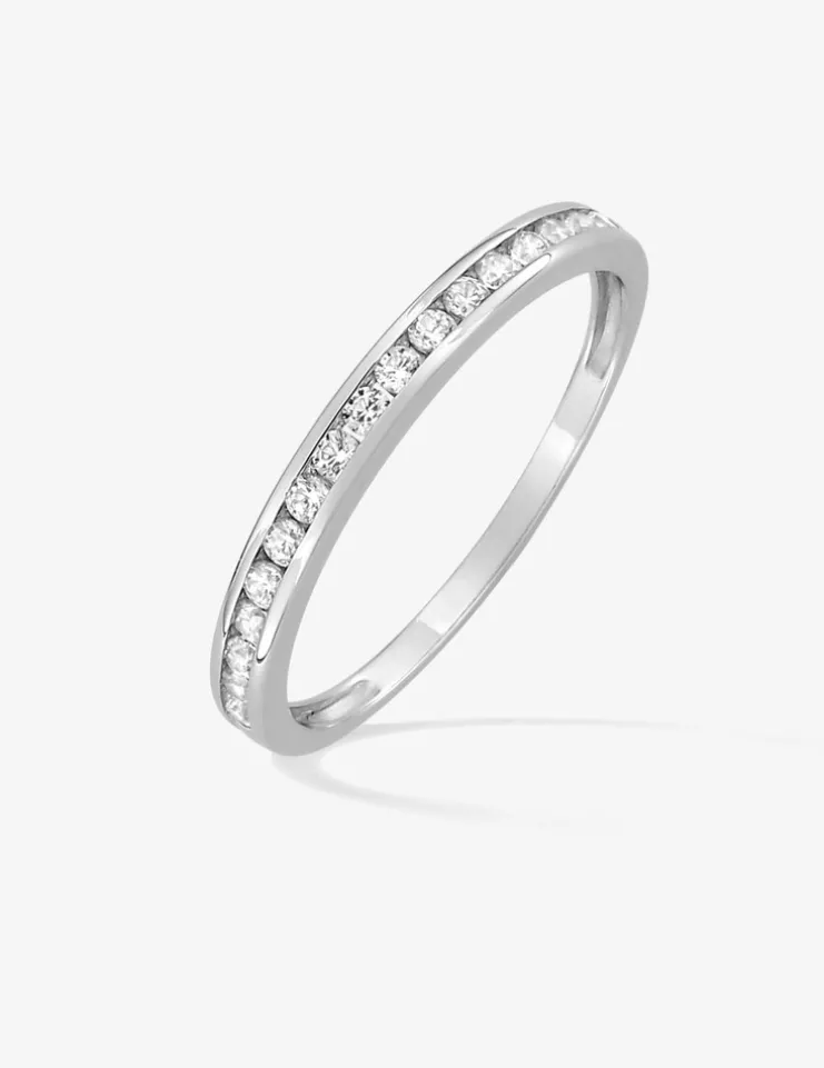 Alliance serti rail or blanc 375 ‰ et oxydes de zirconium, largeur 2,3 mm. – Mariage