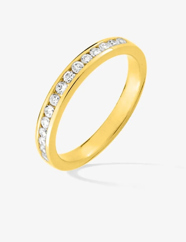 Bague 2 mm serti rail plaqué or et oxydes de zirconium SO OR