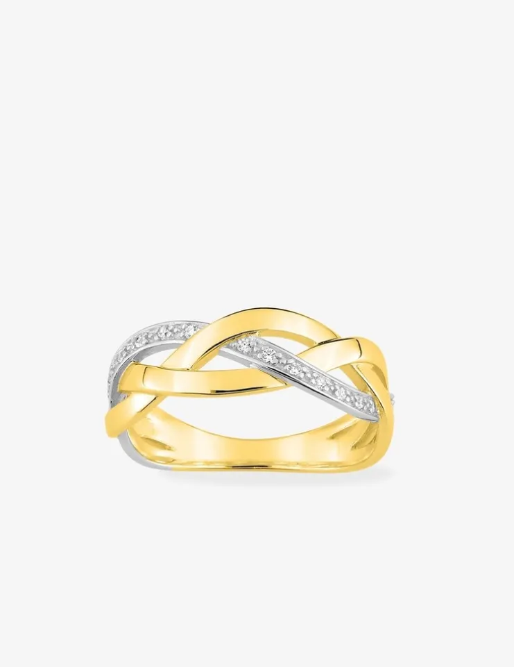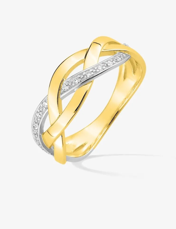 Bague 3 vagues entrelacées plaqué or, rhodium et oxydes de zirconium SO OR