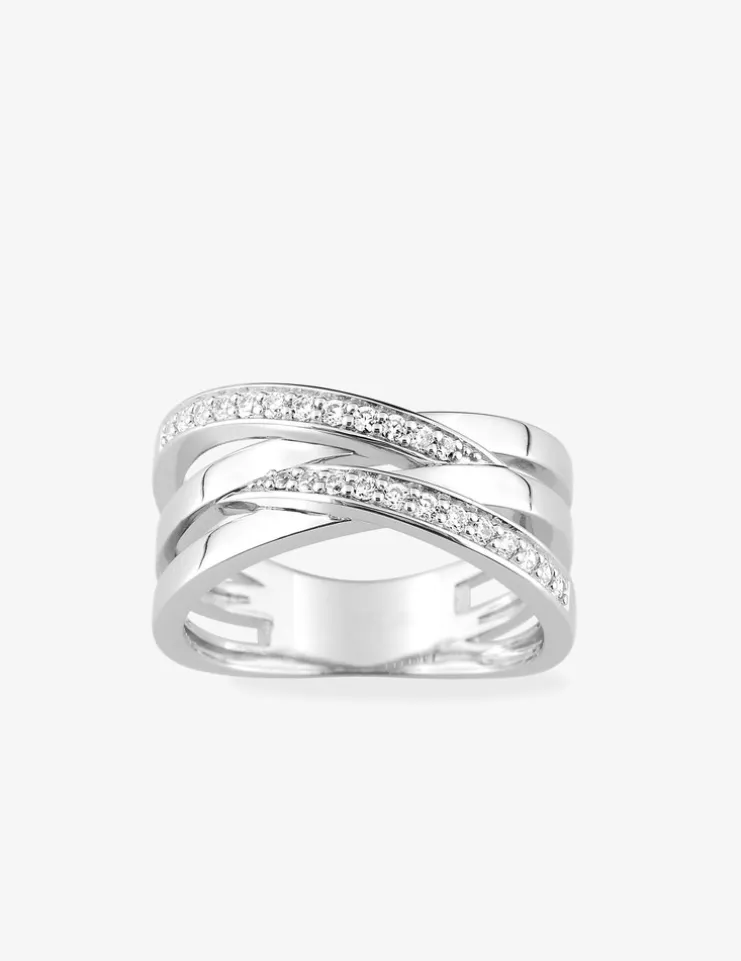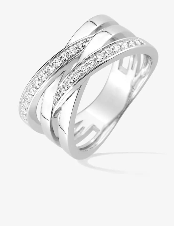 Bague 4 anneaux entremêlés argent rhodié 925 ‰ et oxyde de zirconium SO OR