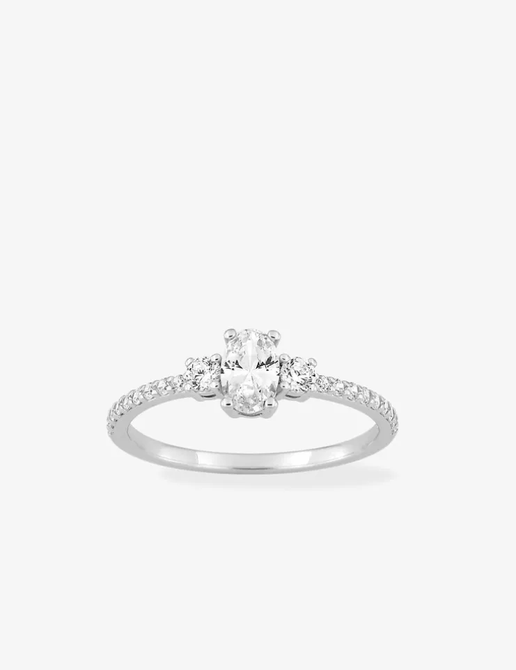 Bague en argent 925 ‰ rhodié ornée d’un oxyde de zirconium ovale entouré d’autres oxydes plus petits. Son allure raffinée en fait un choix idéal pour rehausser vos tenues quotidiennes ou occasionnelles. Cette bague affiche un poids de 1,34 g. pour la taille standard de 54, et se distingue par son design élégant.
