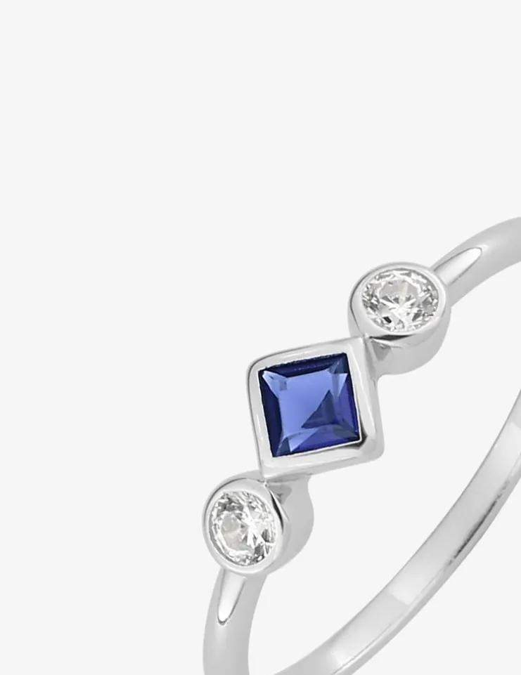 Bague argent rhodié 925 ‰ avec oxyde de zirconium bleu et blanc SO OR
