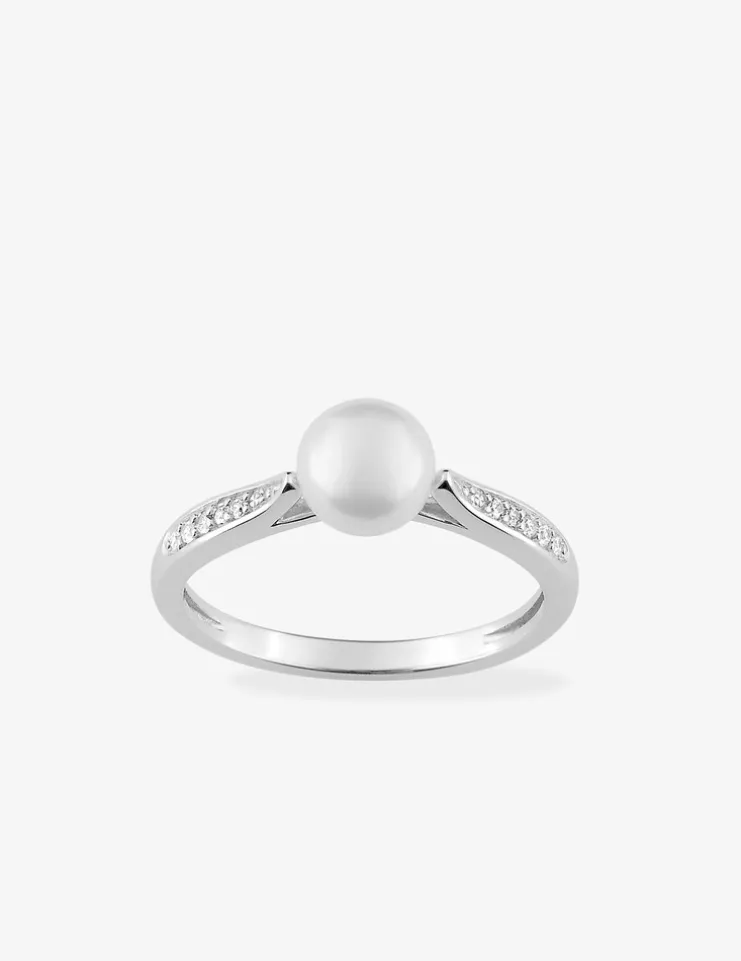 Bague argent rhodié 925 ‰, oxyde de zirconium et perle 6 mm SO OR