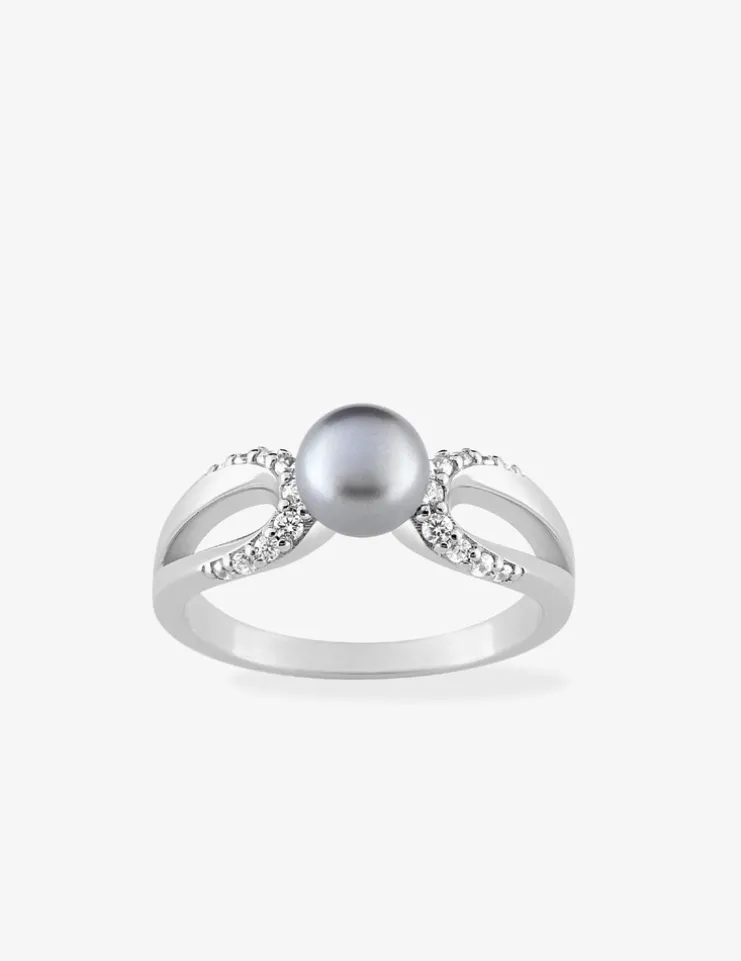 Bague argent rhodié 925 ‰, oxyde de zirconium et perle grise 6 mm SO OR