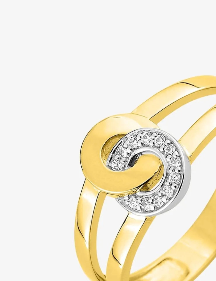 Bague cercles or jaune 375‰, rhodium et oxydes de zirconium SO OR