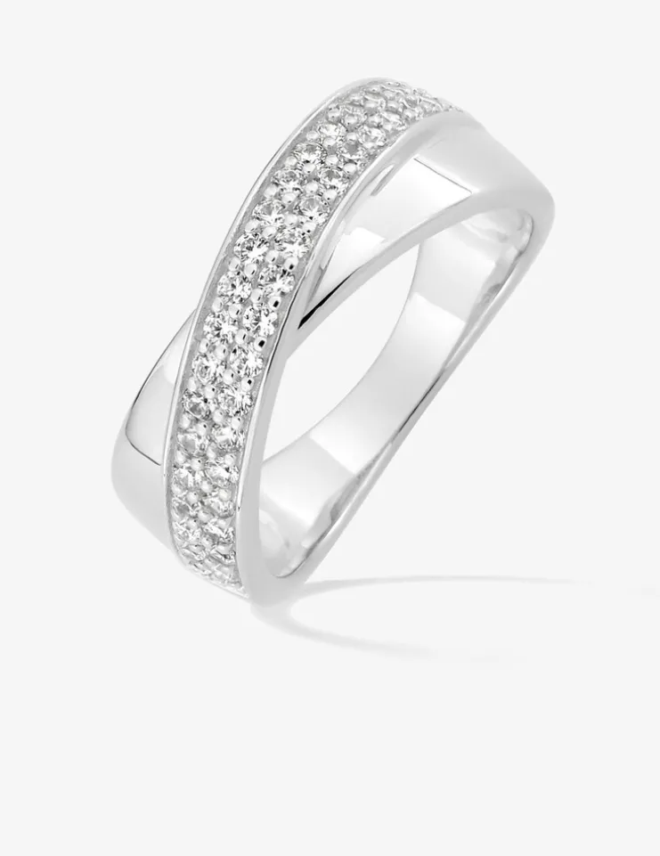 Bague croisée argent 925‰ rhodié et pavage oxydes de zirconium SO OR